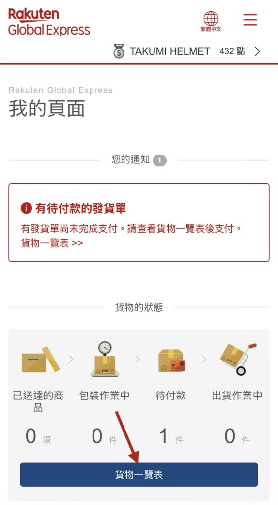 「 接著是實際購買完,賣家送達轉運站 Rakuten Global Express 後續步驟。」